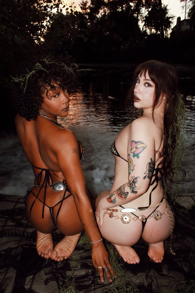 Crocodile set available in triangle or o ring bandeau style tops. Black elastic trim with extra long ties for an adjustable fit. Made to order.